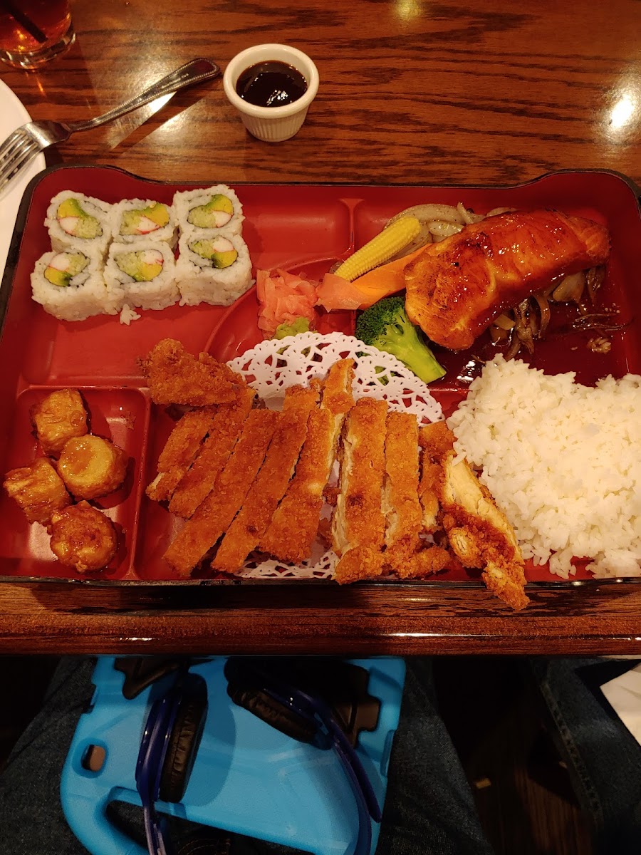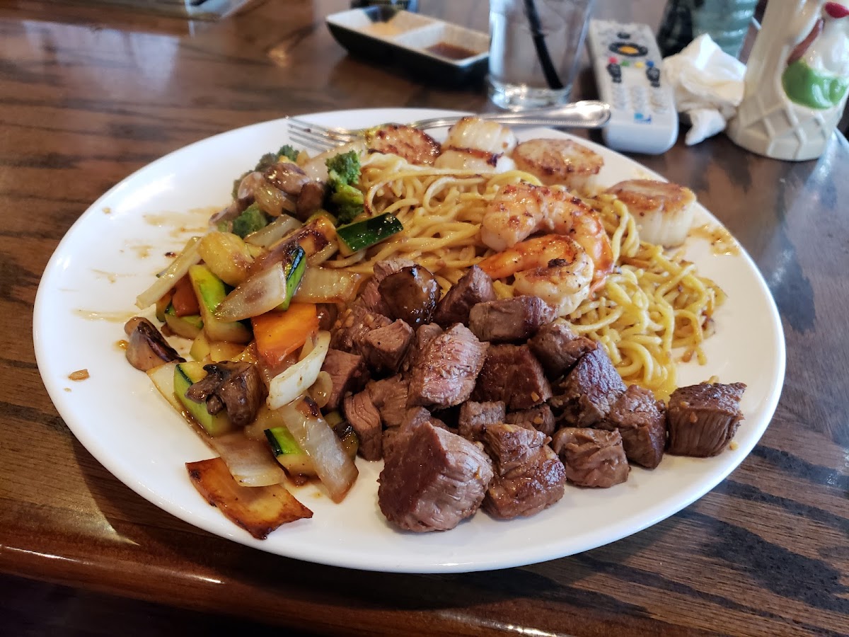 Very fun dining experience. My husband surprised me on date night, for something different. The food portions were huge and tasty. We had hibachi dinners that started with soup and salad. I got steak and scallops while my husband got the chicken. We both were extremely happy with our meals. The noodles cooked up on the hibachi are delicious. We definitely will go back with the whole family.